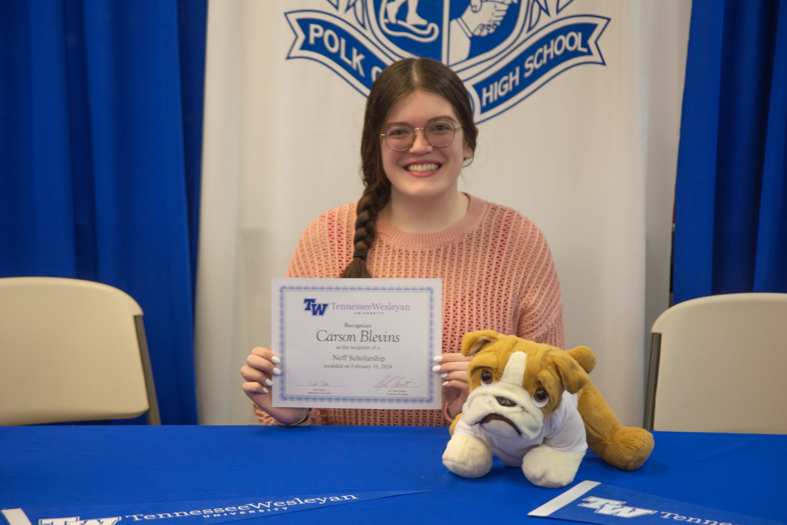 “Samantha and Carson both exhibit the qualities we are looking for in future Bulldogs,” said Dr. Tyler Forrest, TWU President. “I am always excited to be part of these presentations and am enthusiastic about how they will contribute to our campus and region.”